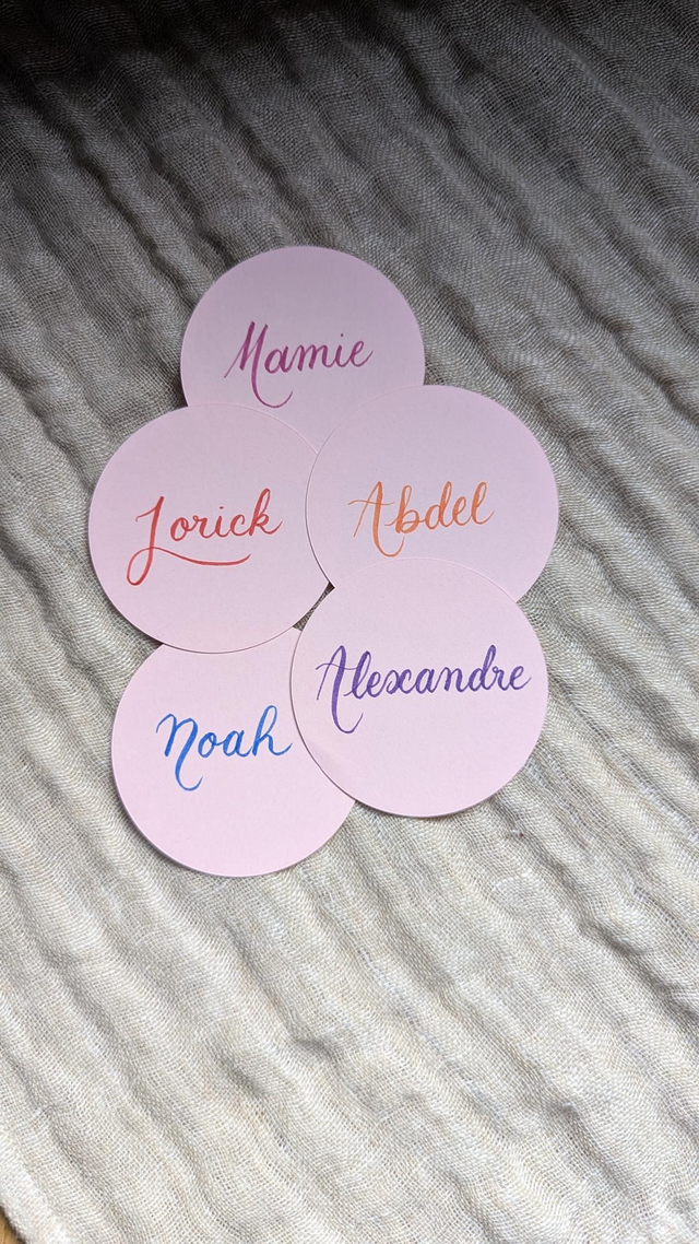 Marque-places colorés calligraphiés - ronds