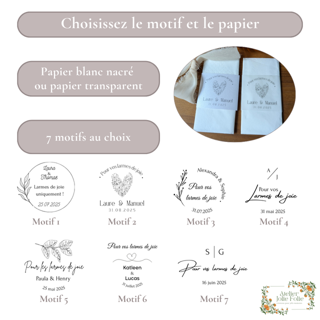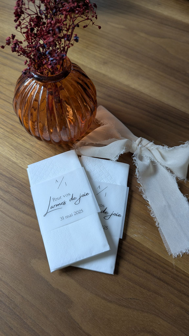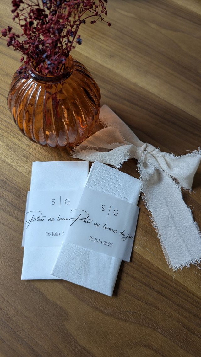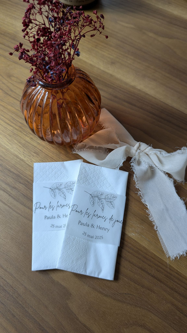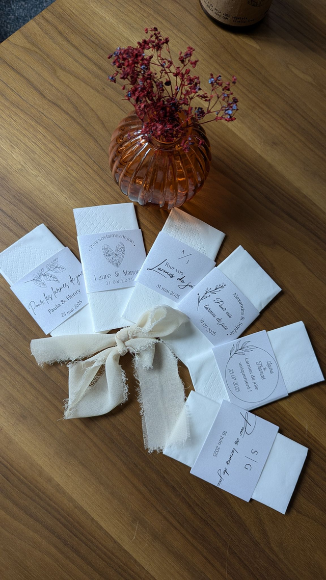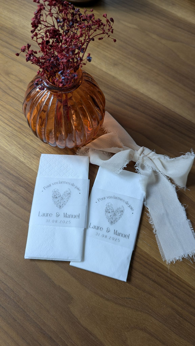 Mouchoirs personnalisables avec vos noms et votre date de mariage.